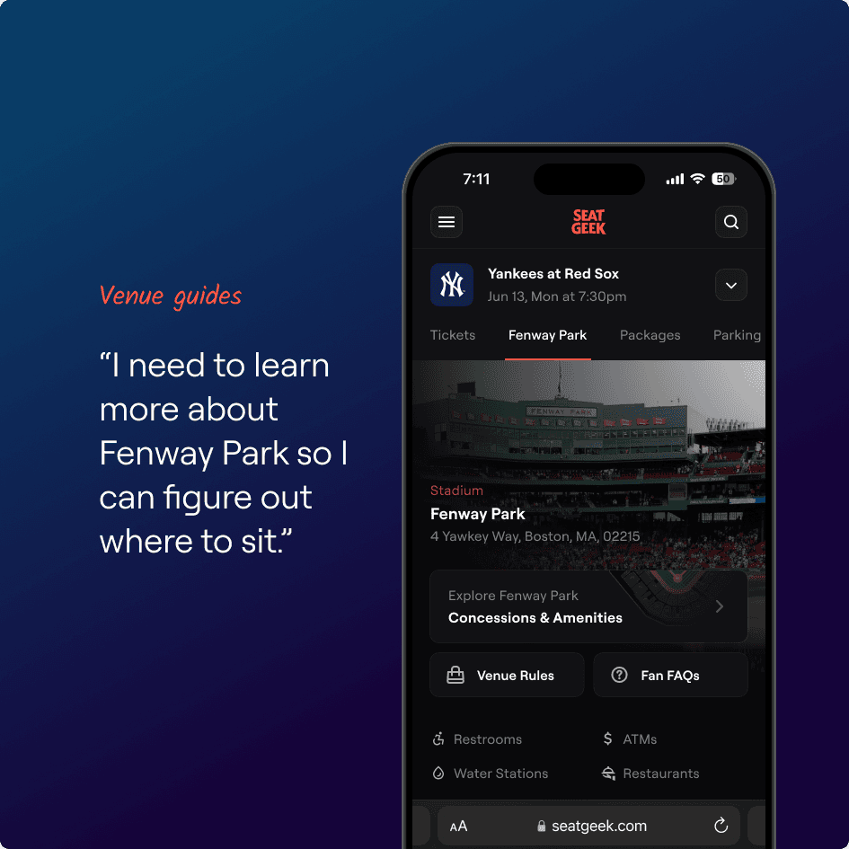 SeatGeek struggled to get resale tickets into fans’ hands due to confusing fulfillment rules and UX. I kickstarted a fix by designing new flows as a hackathon project which led to fulfillment improvements being adopted as a 2025 company priority. I managed product and content design, leading messaging redesigns across the funnel. This led to 66% fewer fulfillment-related support contacts for resale tickets.