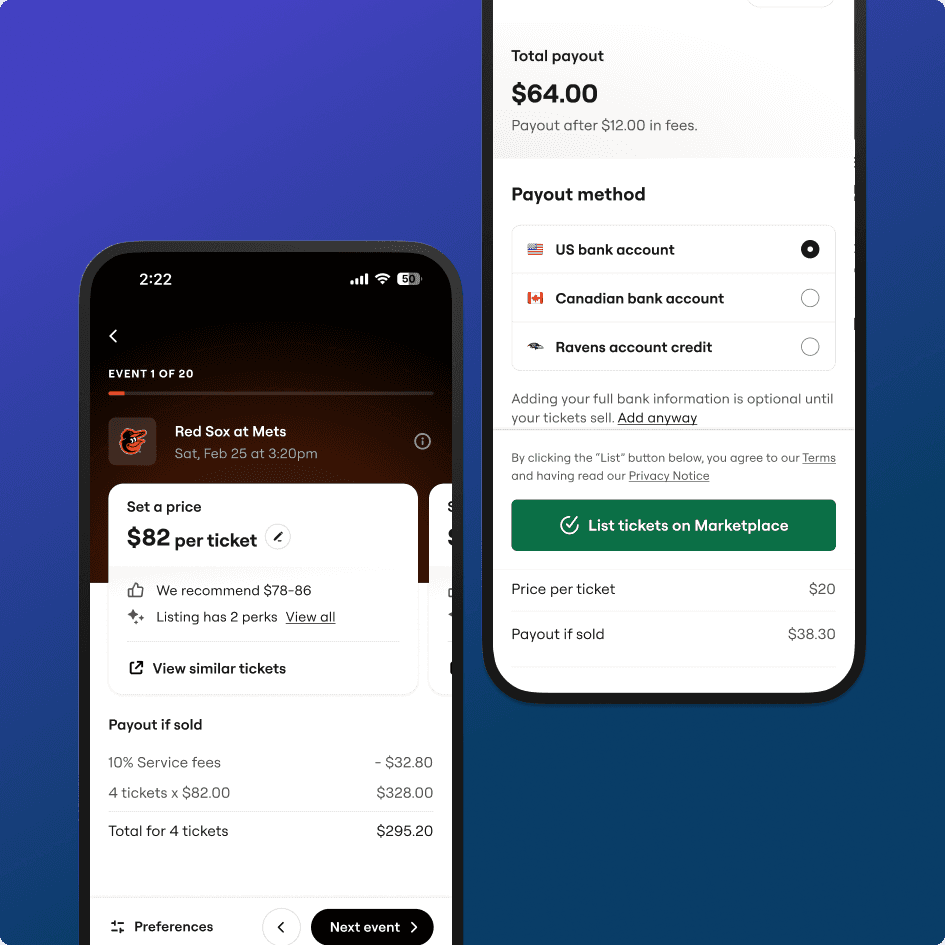 From 2023–24, I led a team of 3 designers and 2 researchers to redesign SeatGeek’s fan ticket-selling experience end to end. Informed by a large-scale seller study, we improved ticket ingestion, implemented AI pricing, and streamlined listing tracking. In 2024, the new UX onboarded 581K sellers (+70% YoY) and enabled $1B in fan-to-fan listing value.